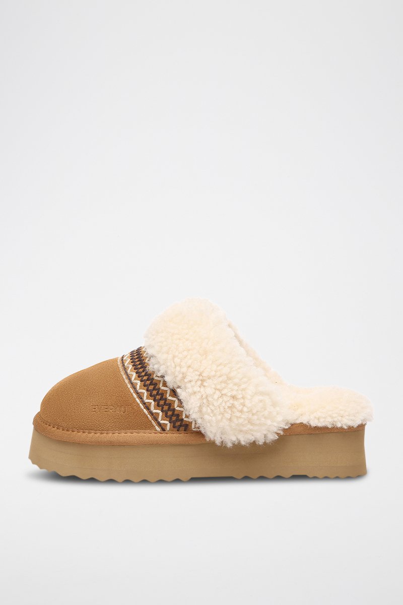 Sabots fourrés plateformes en nubuck.