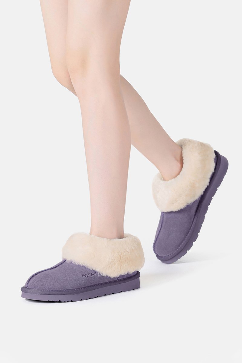Pantoufles fourrées en nubuck.
