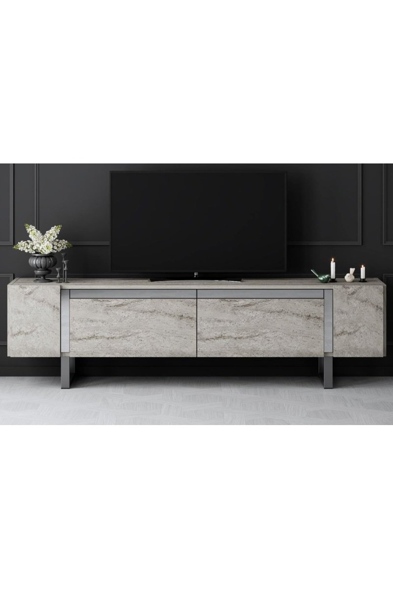 Meuble TV 2 abattants Yildiz - Imitation marbre et argenté