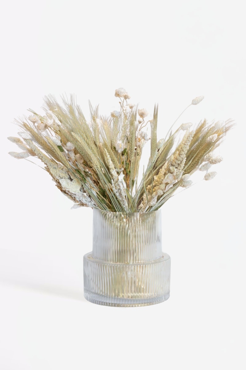 Bouquet Rhodanthe, Amaranthus, Phalaris et Triticale séchés - 50 cm - Beige