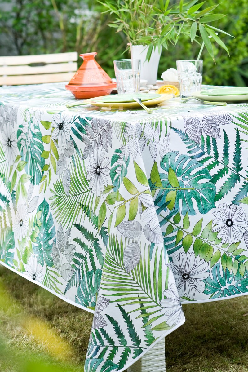 Nappe rectangulaire en toile cirée Chlorophylle - Blanc