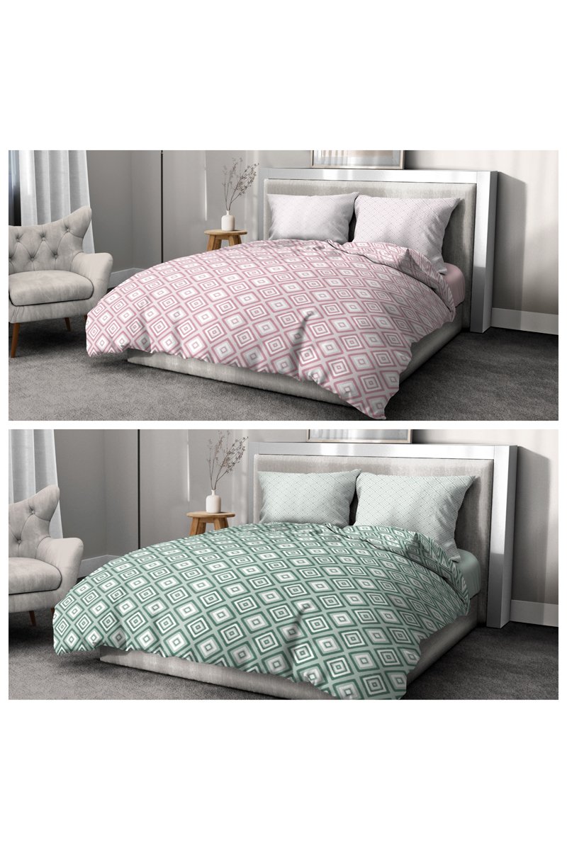 2 parures de couette en coton 57 fils/cm² Fox Trot - Vert et rose