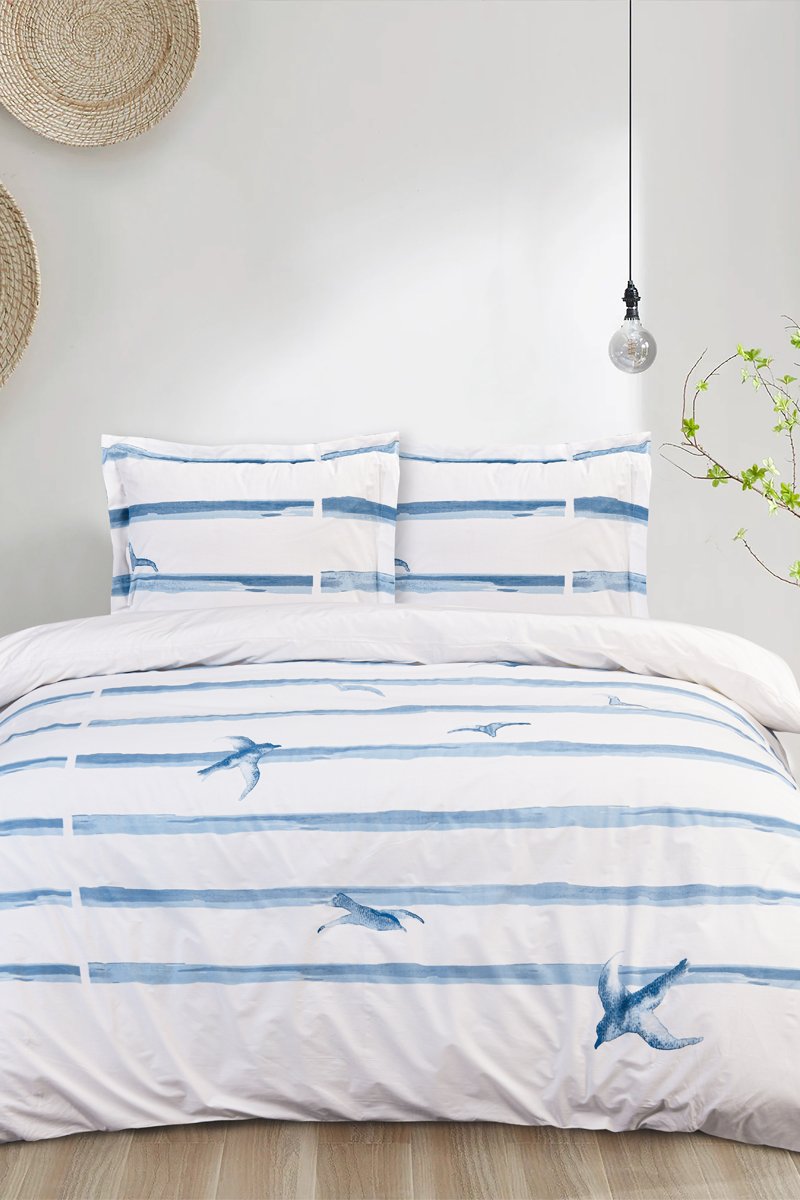 Parure de couette en coton 57 fils/cm² Hirindunae - Bleu et blanc