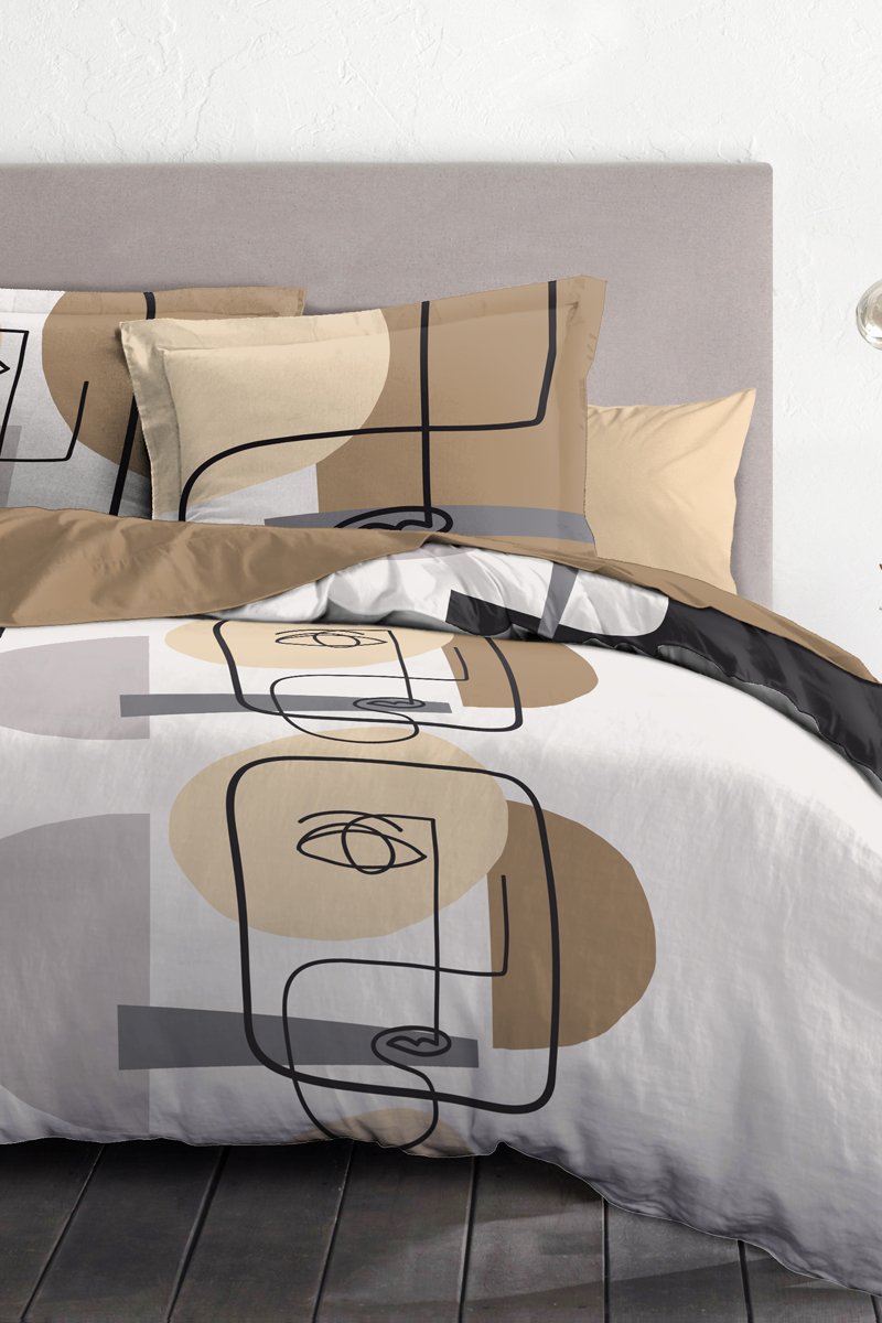 Parure de couette en coton 57 fils/cm² Méli-mélo - Sable et blanc