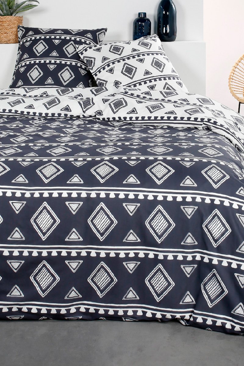 Parure de couette en coton 57 fils/cm² Sunshine - Bleu marine et blanc