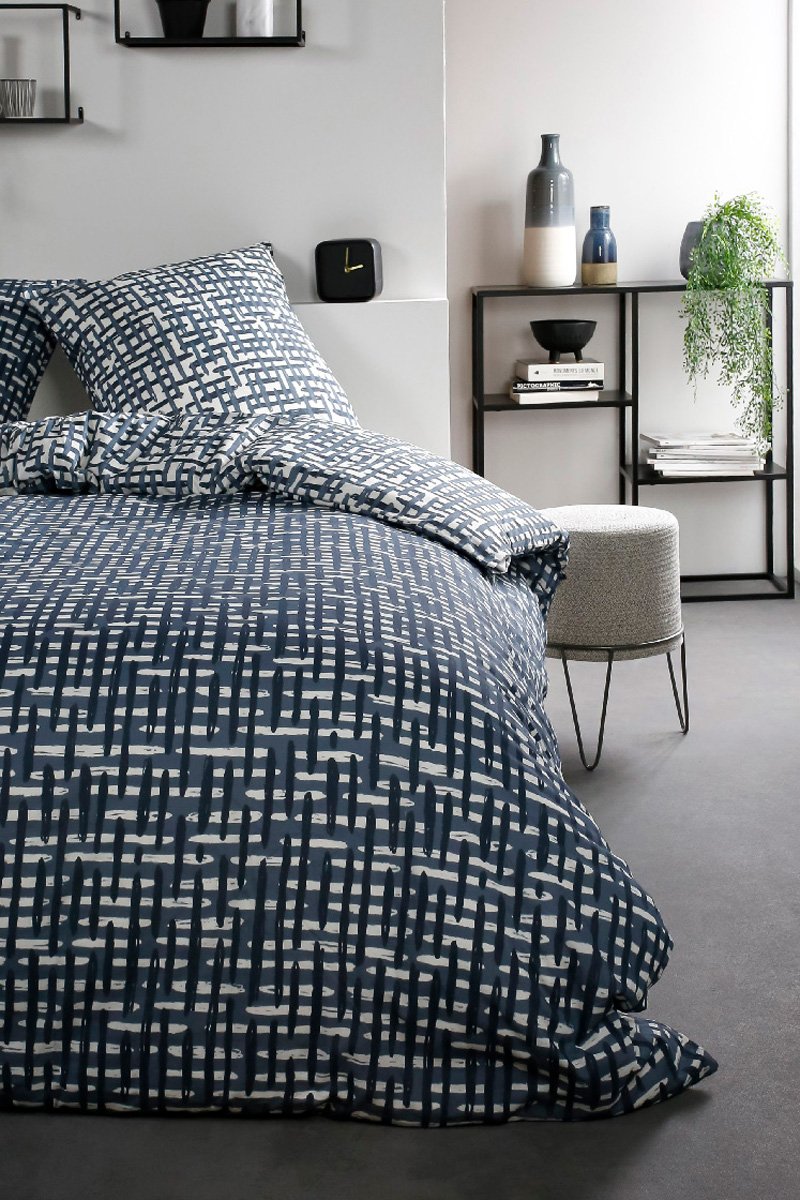 Parure de couette en coton 57 fils/cm² Sunshine 6.44 - Bleu et blanc