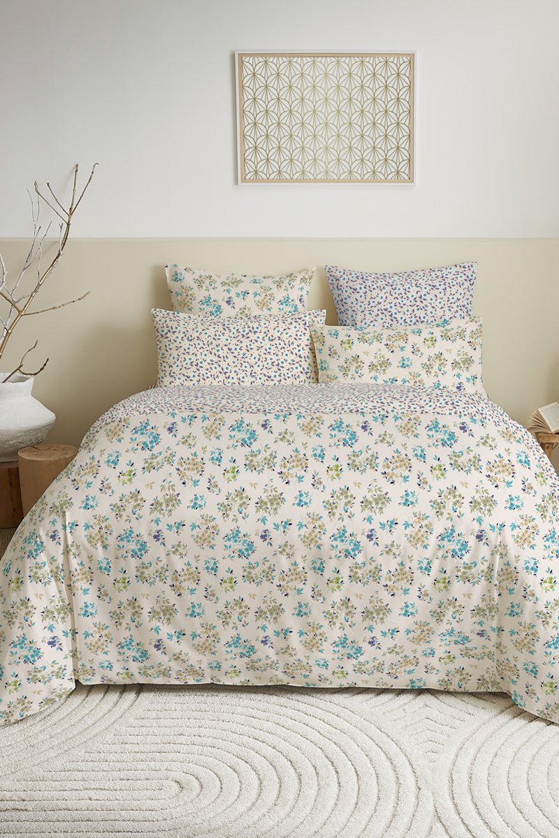 Parure de couette réversible en coton 57 fils/cm² - Beige et vert