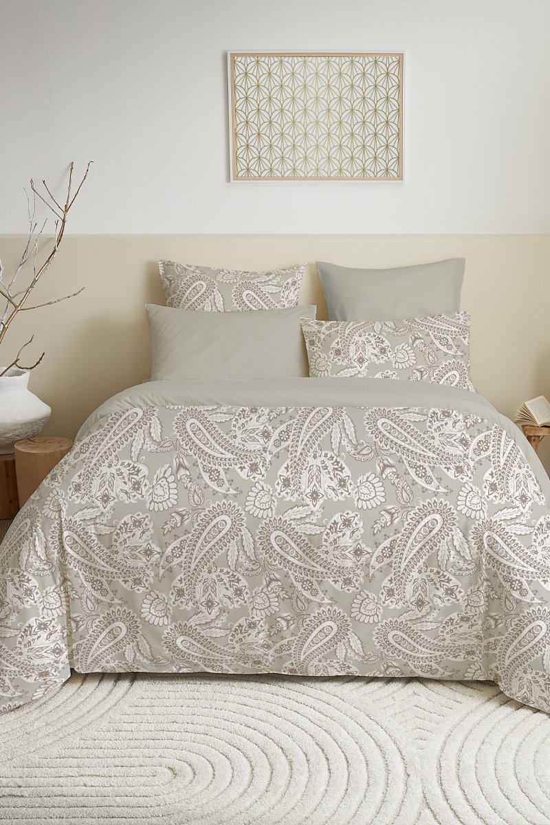 Parure de couette réversible en coton 57 fils/cm² - Beige