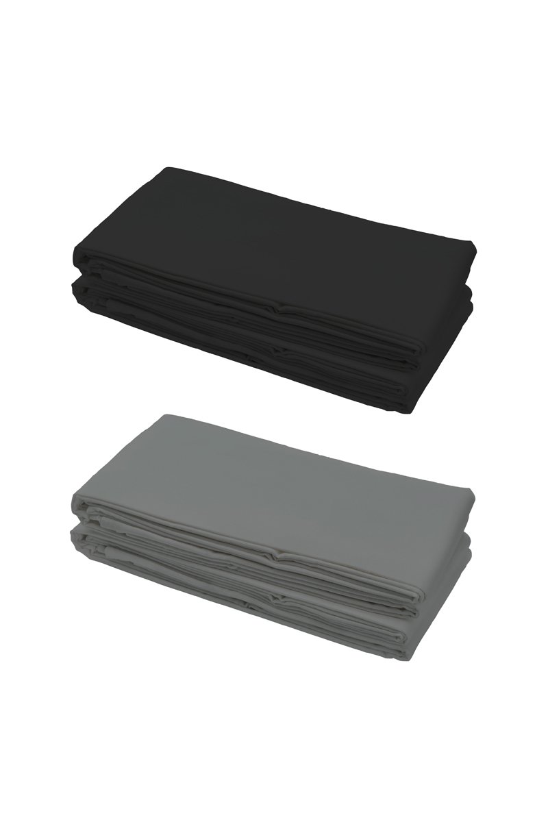 2 draps plats en coton 57 fils/cm² - Noir et gris foncé