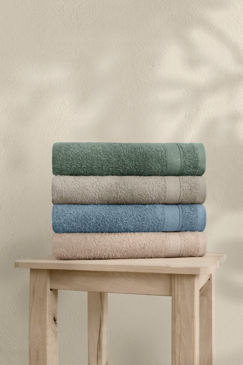4 serviettes invité - Vert et beige - 50 x 90 cm