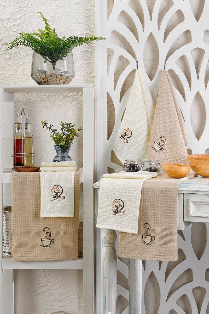 6 torchons - Beige et écru