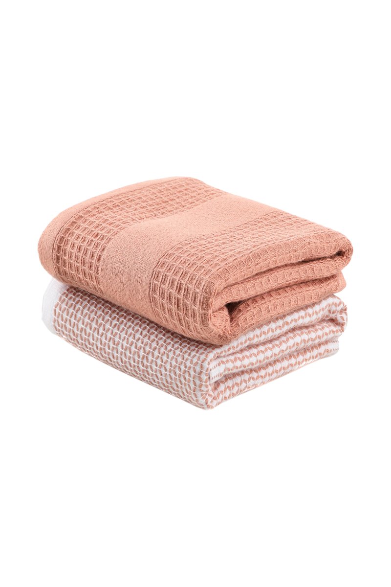 2 torchons - Rose et blanc