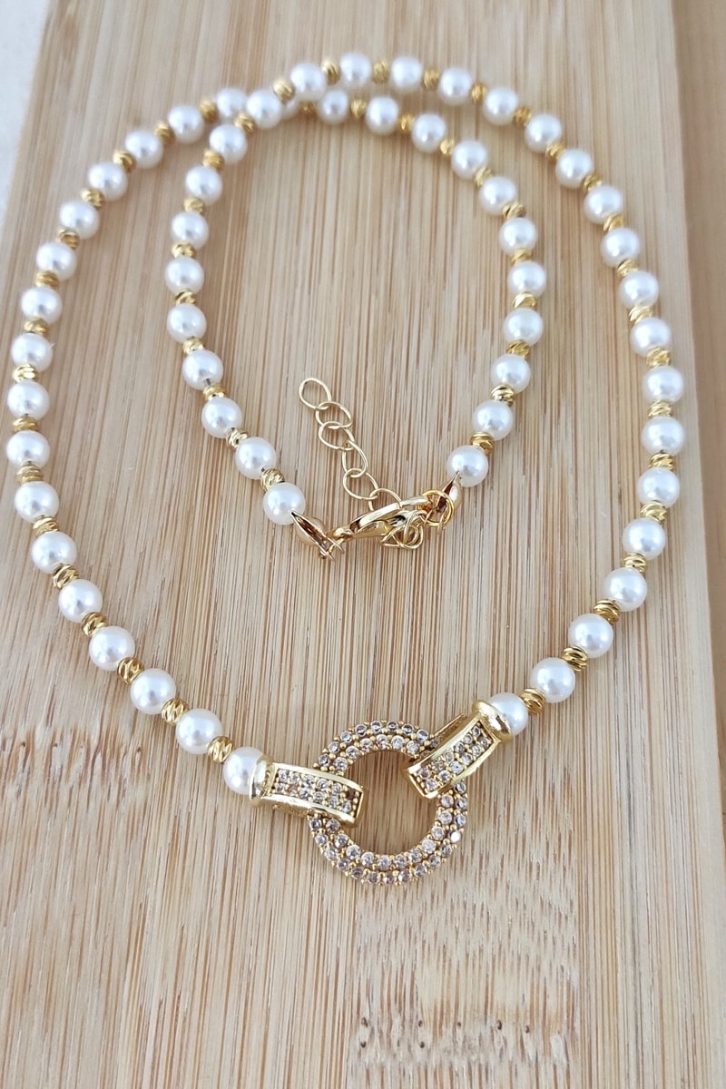 Collier serti de perles d’imitation.