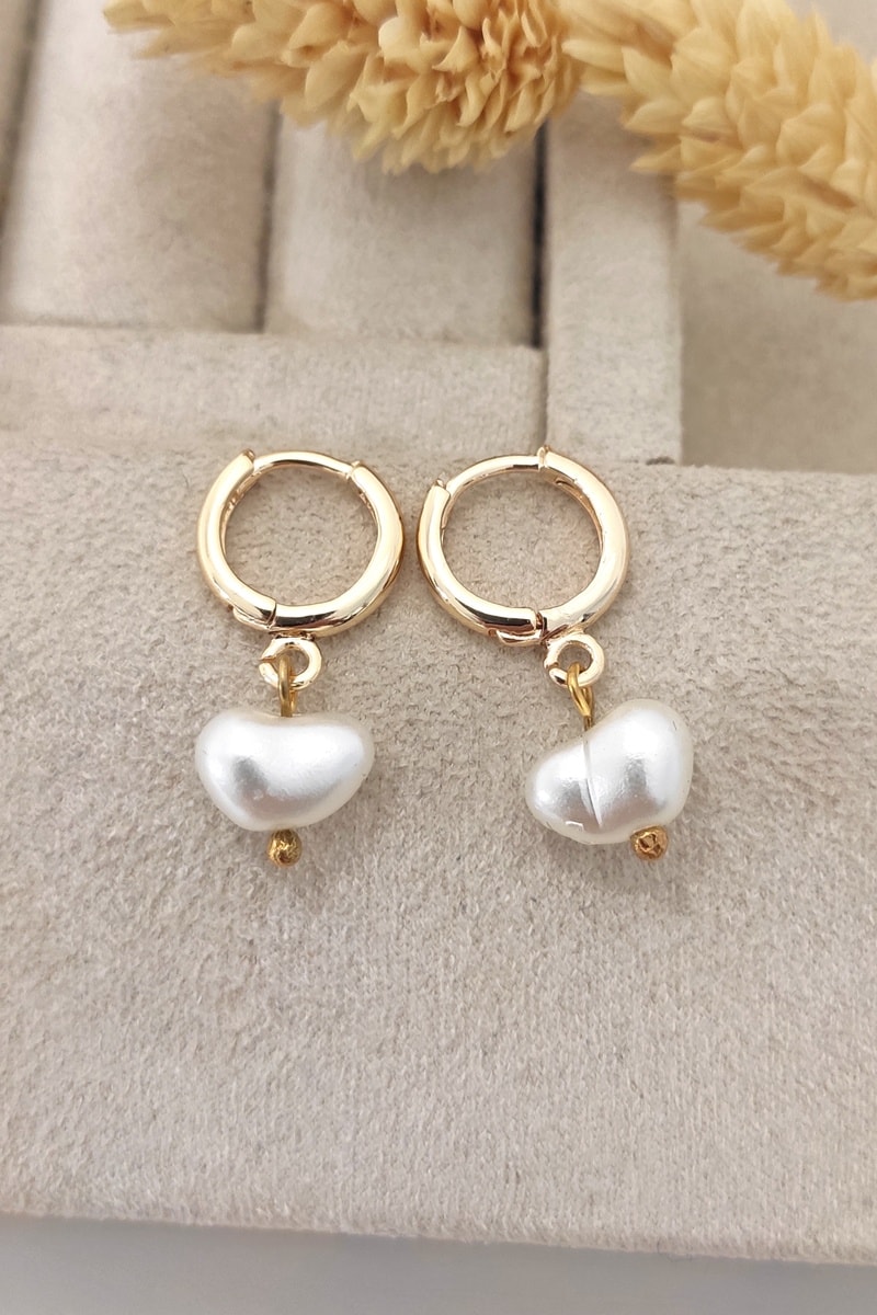 Créoles serties d’une perle d’imitation.