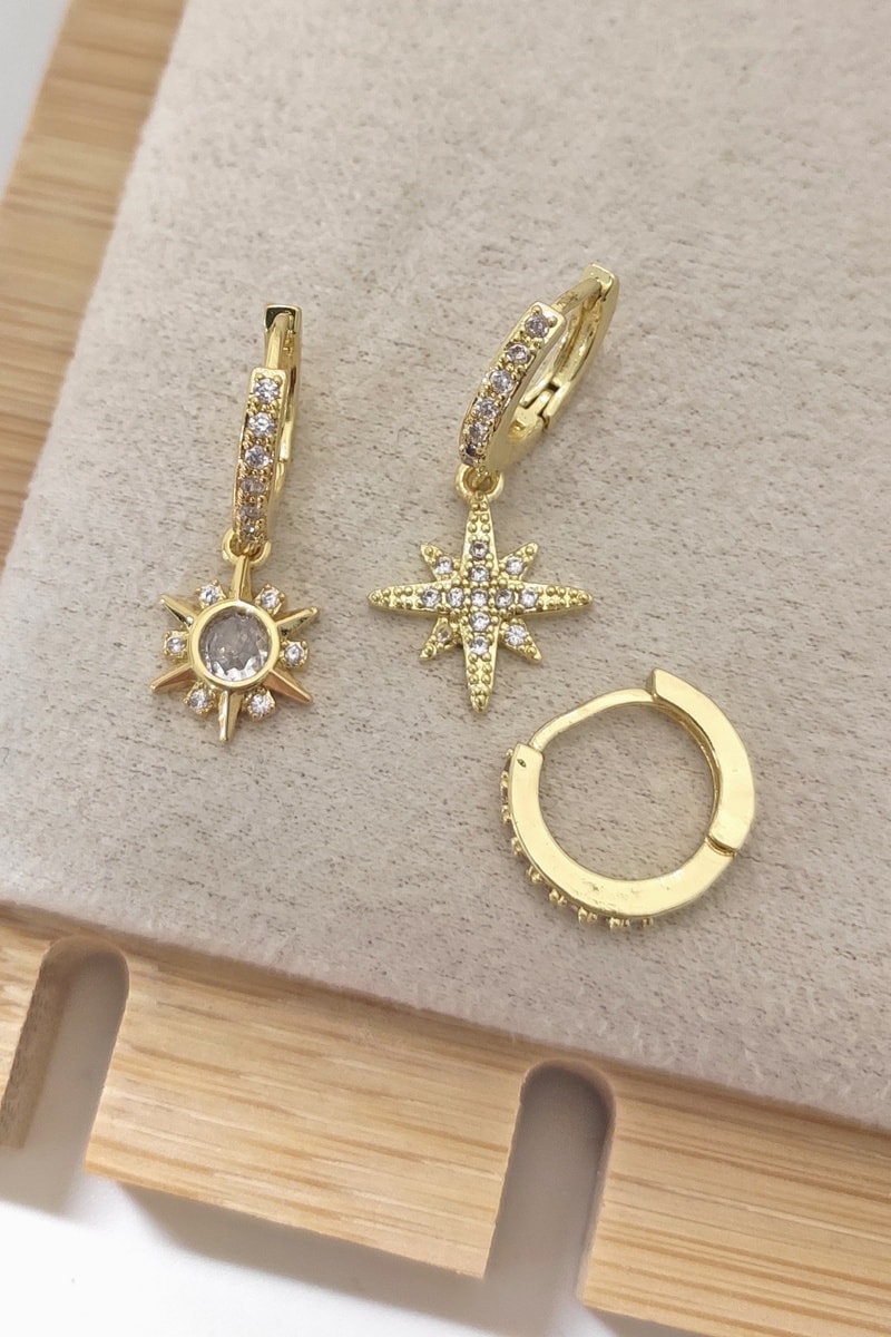 3 boucles d'oreilles dépareillées serties de zircons.
