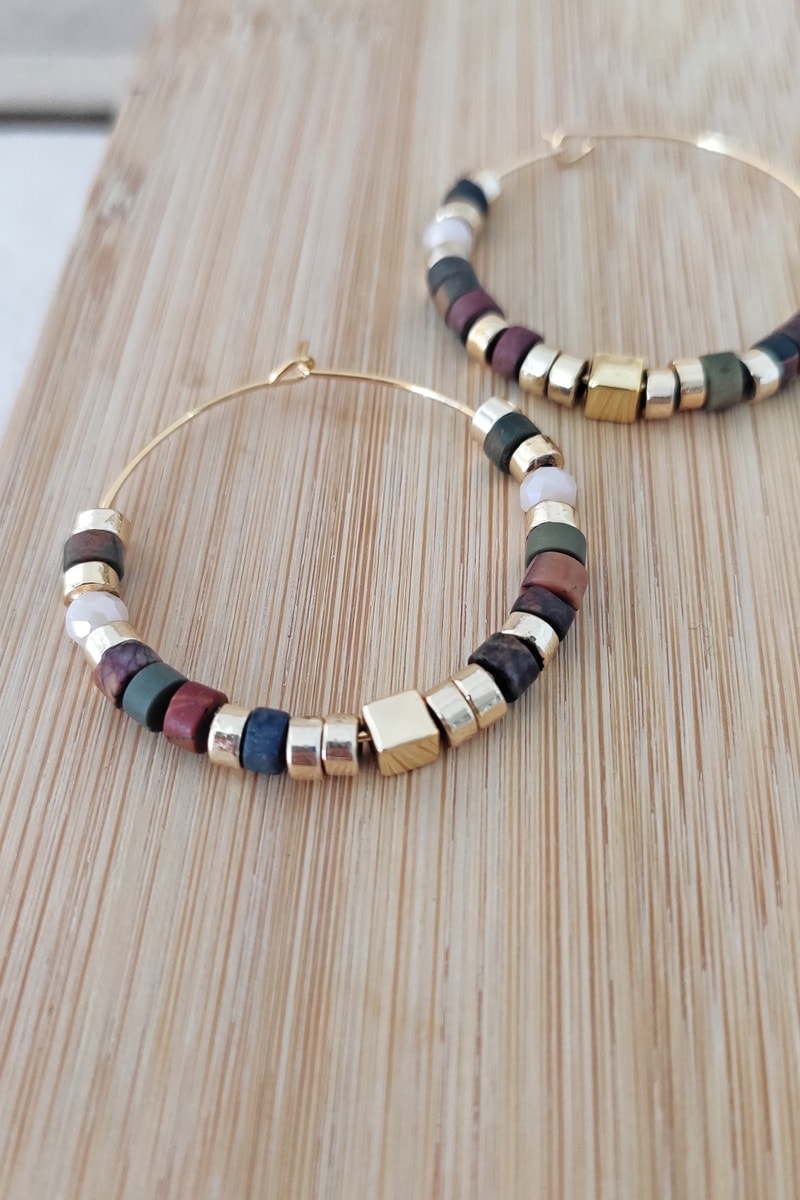 Créoles serties de 6 variscites et 6 cristaux.