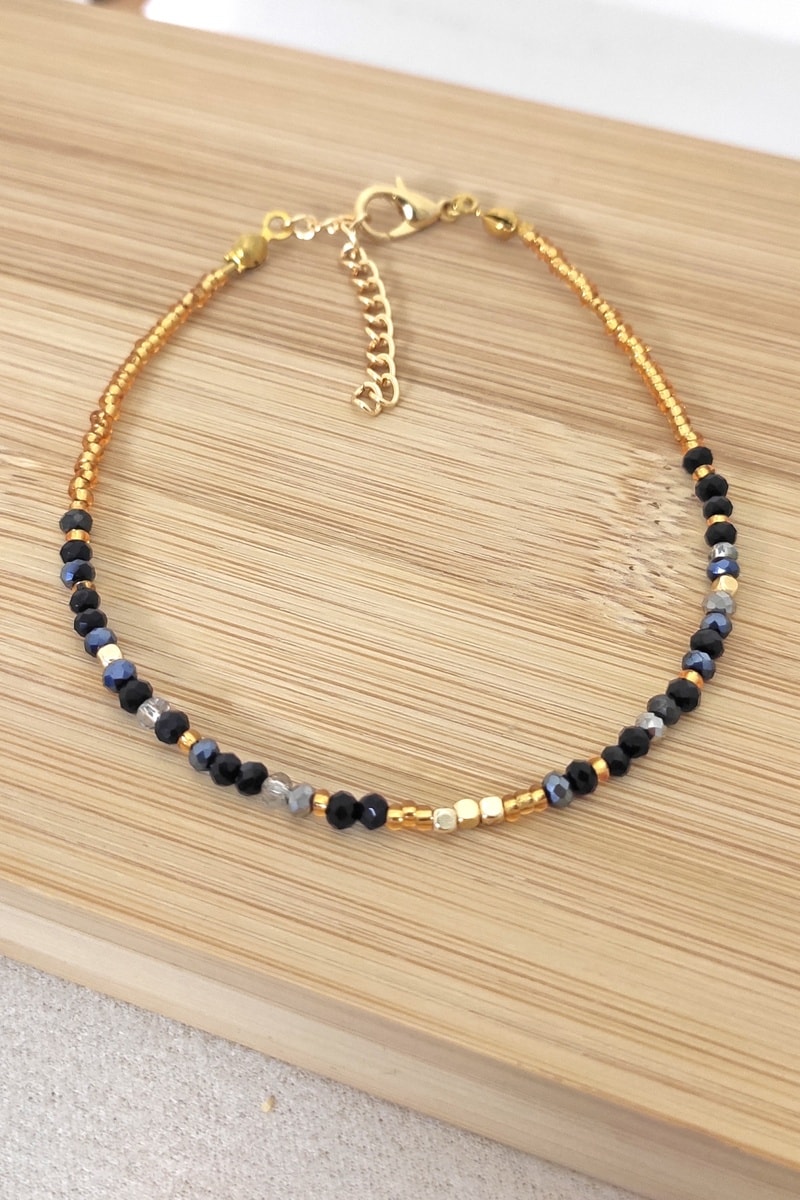 Chaîne de cheville sertie de perles d'imitation.