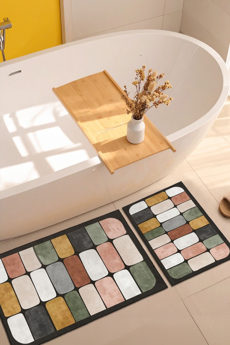 2 tapis de bain - Noir et marron clair - 50 x 60/60 x 100 cm