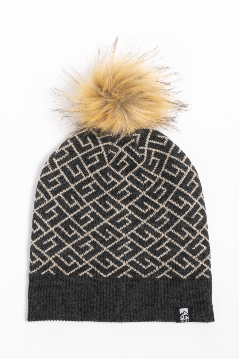 Bonnet à pompon en laine mérinos mélangée.