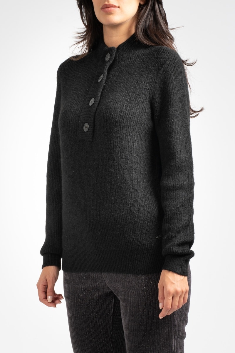 Col montant avec patte boutonnée.