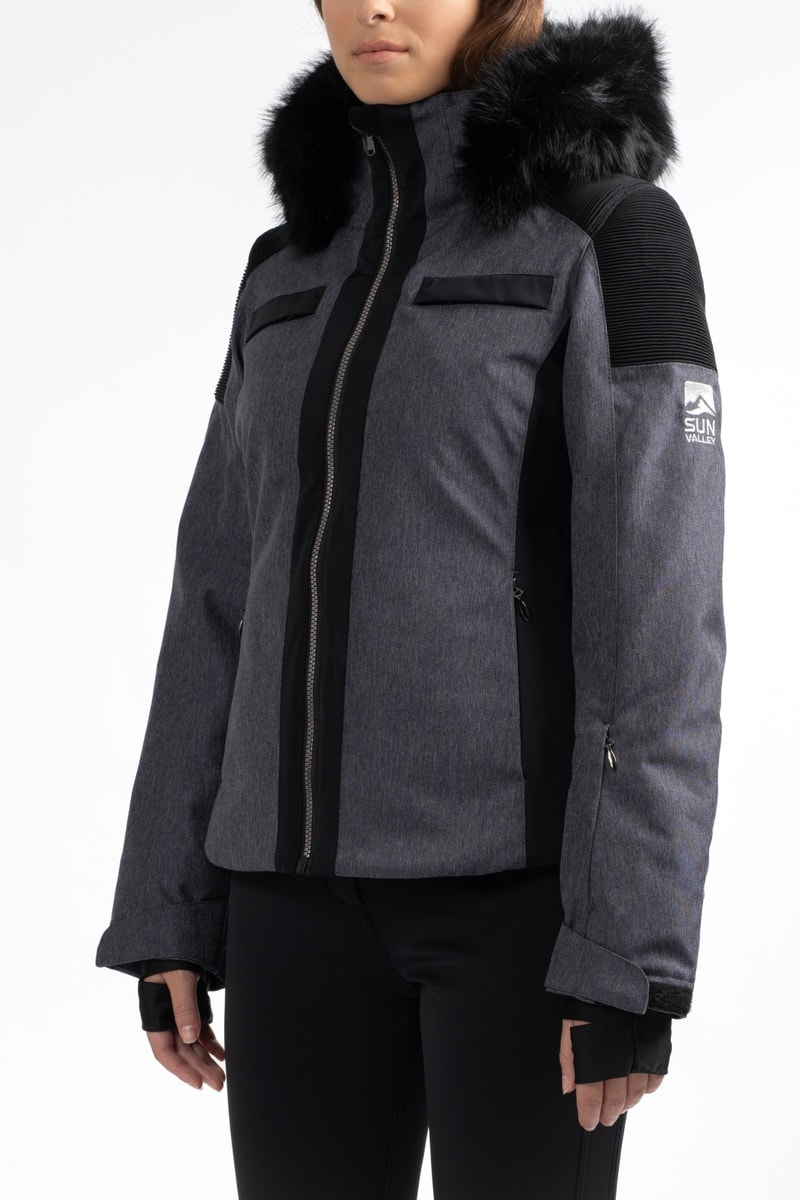 Veste ski à capuche avec fourrure synthétique.