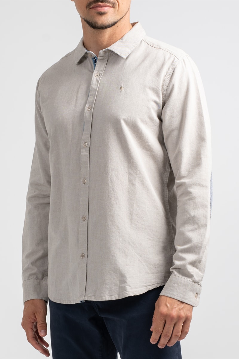 Chemise à manches longues boutonnées avec coudière dont 1 empiècement et logo.