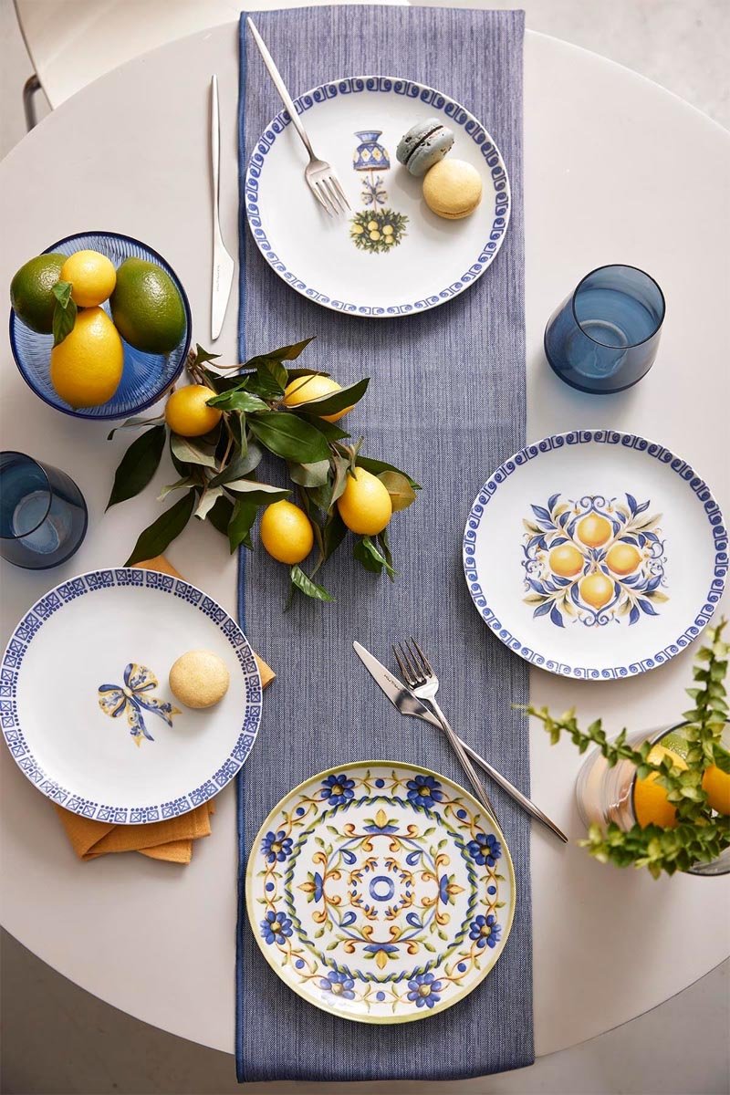 Motifs fleuris, citrons et ruban.