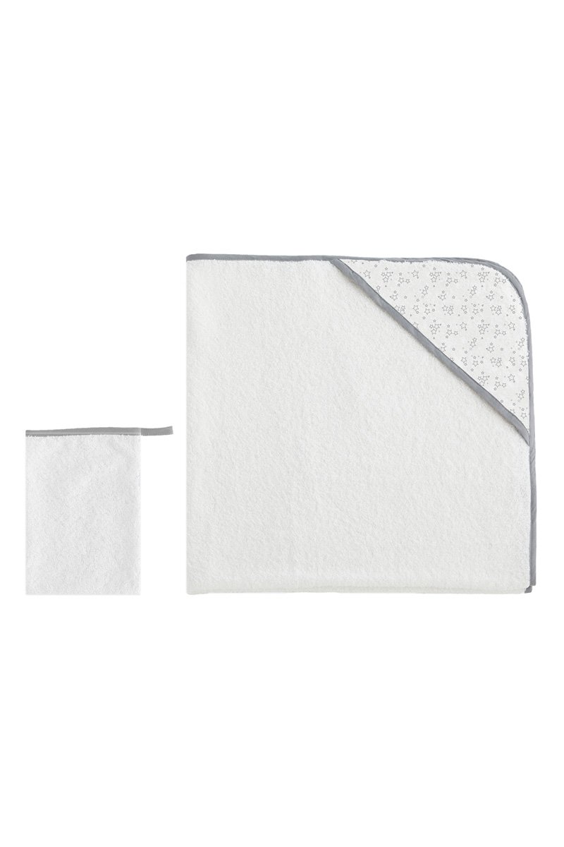 Sortie de bain et gant Carina Lulu - Blanc et gris - 75 x 75 cm