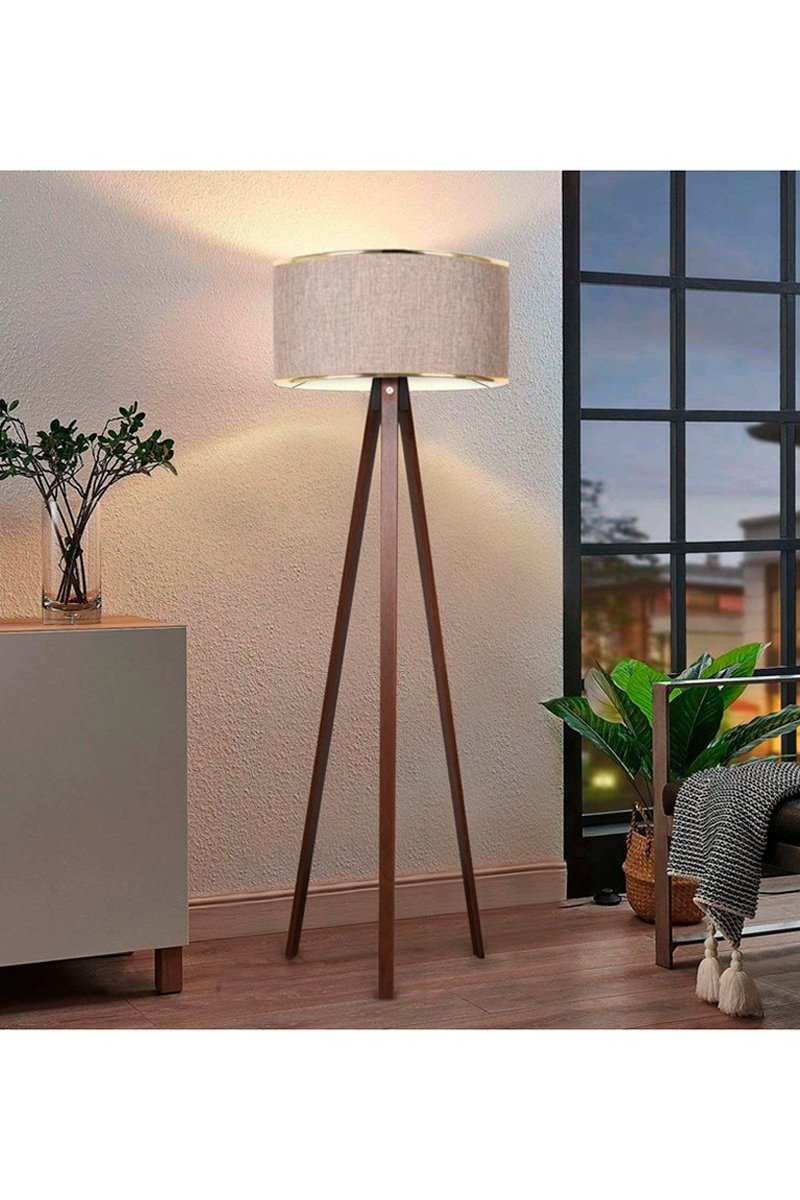 Lampadaire trépied - Marron et beige