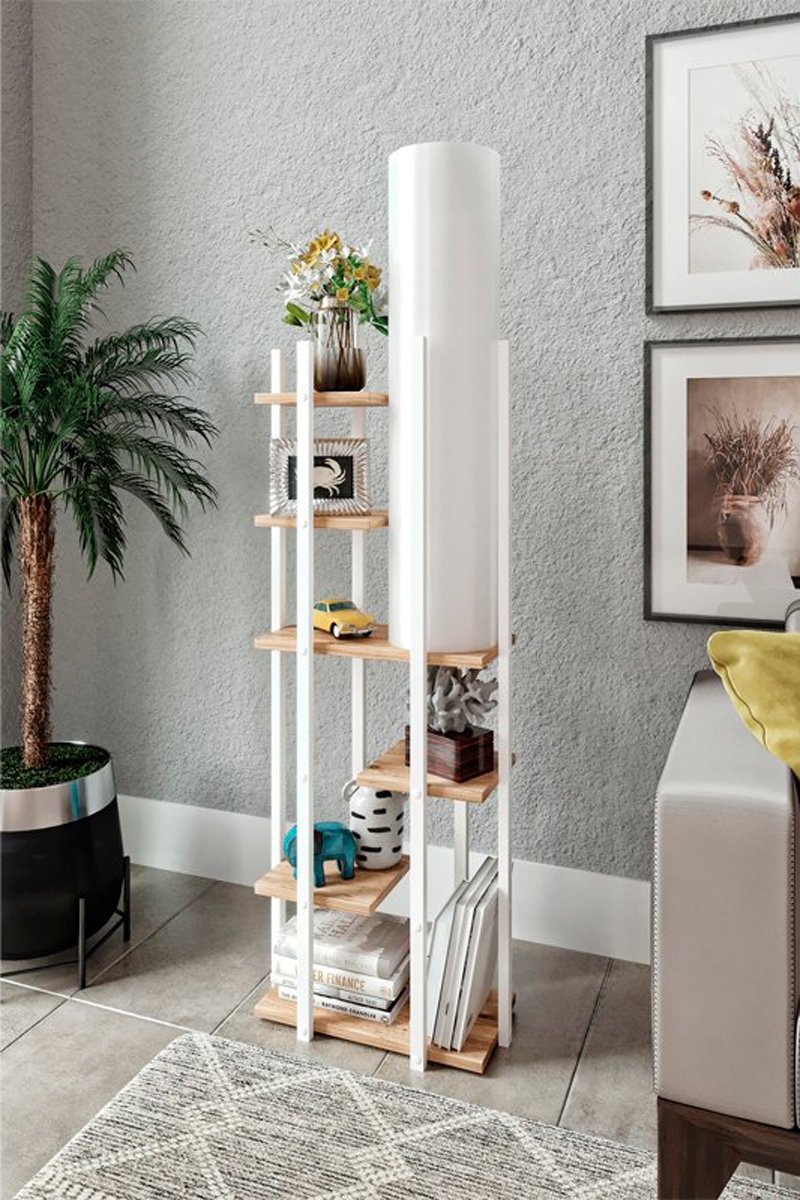Lampadaire Vogue ERH - Blanc et naturel - 60 W