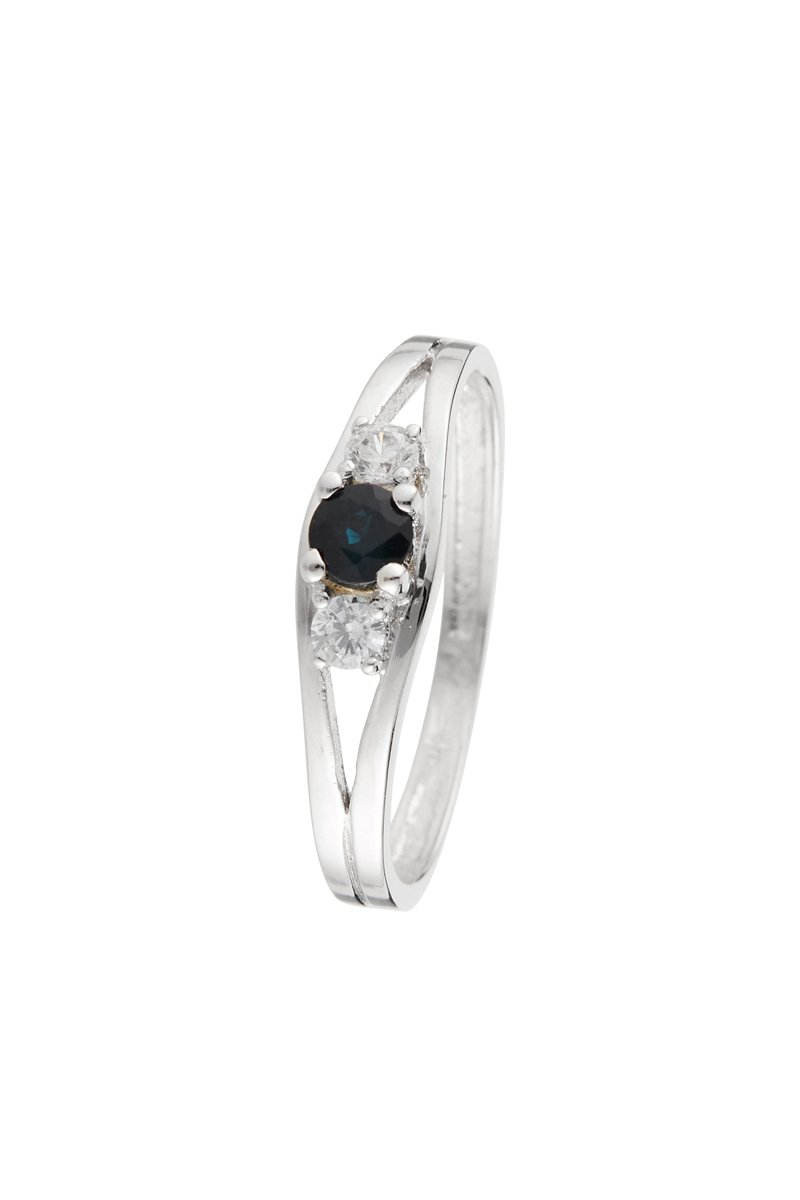 Bague en or blanc sertie d'un saphir et de zirconiums.