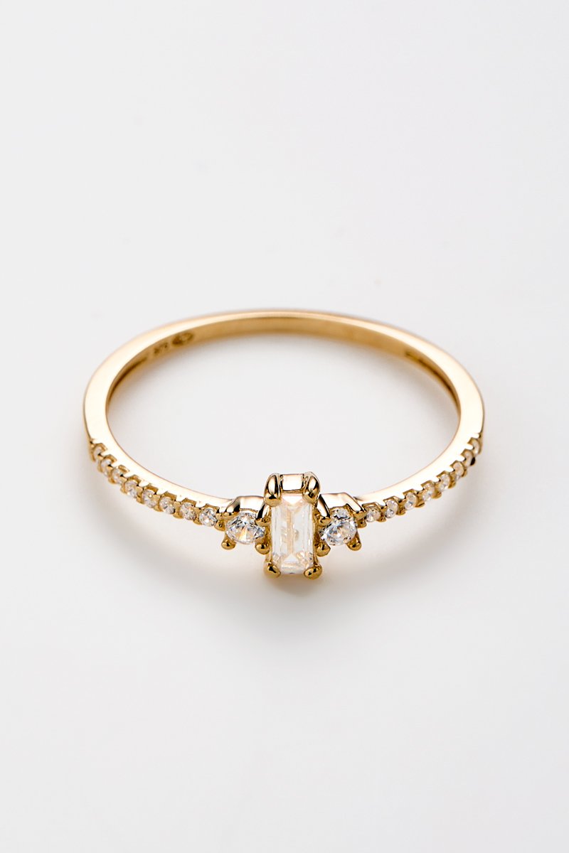 Bague en or jaune sertie de zirconiums.