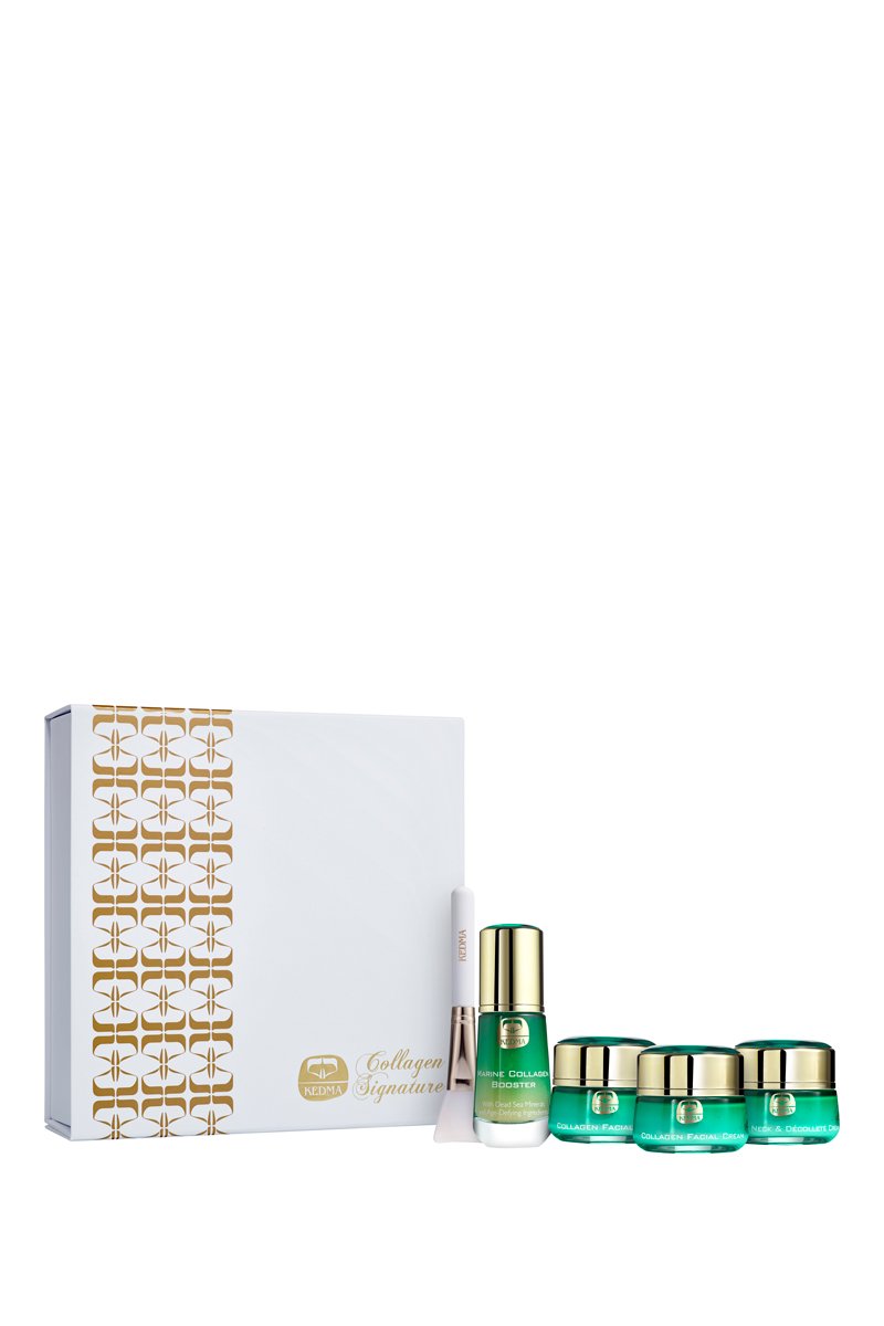 Crème cou et décolleté : Aqua(Dead Sea Water), Hydrolyzed Collagen, Phenoxyethanol, Anthemis Nobilis Flower Extract, Titanium Dioxide, Aloe Barbadensis Leaf Extract, Cucumis Sativus Fruit Extract, Parfum, Sodium Benzoate, Potassium Sorbate, Benzyl Alcohol, Chlorphenesin, Calendula Officinais Seed Oil, Polysorbate 20, Bisabolol, Tocopheryl Acetate (Vit E), Ascorbic Acid (Vit C), BHT.