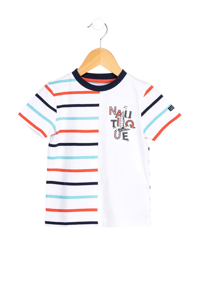 Coloris : blanc, bleu marine, orange et ciel