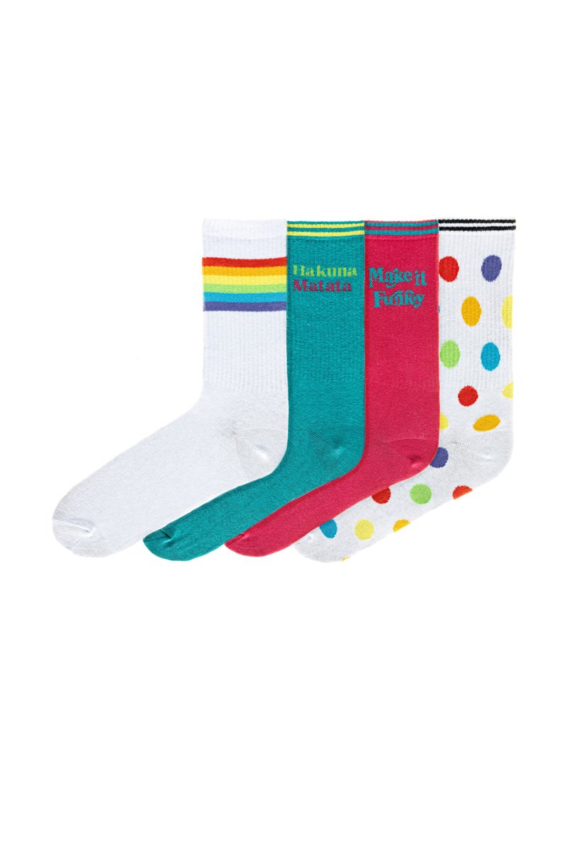 4 paires de chaussettes - Blanc, rouge, bleu et jaune