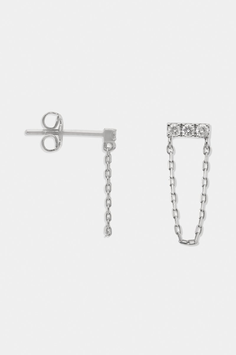 Boucles d’oreilles pendantes en or blanc serties de 3 diamants.
