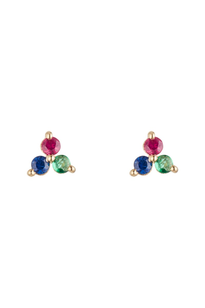 Puces en or jaune serties d'une émeraude, d'un rubis et d'un saphir.