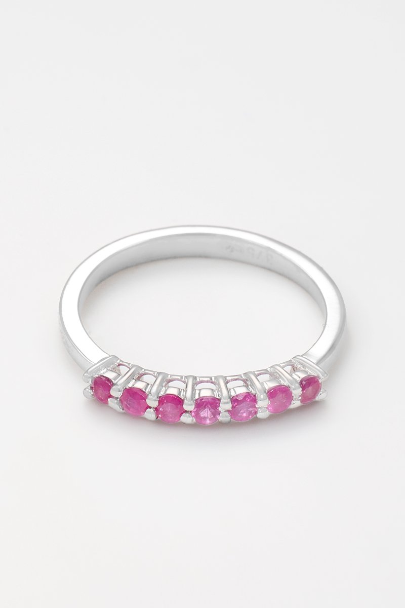 Bague en or blanc sertie de 7 rubis.