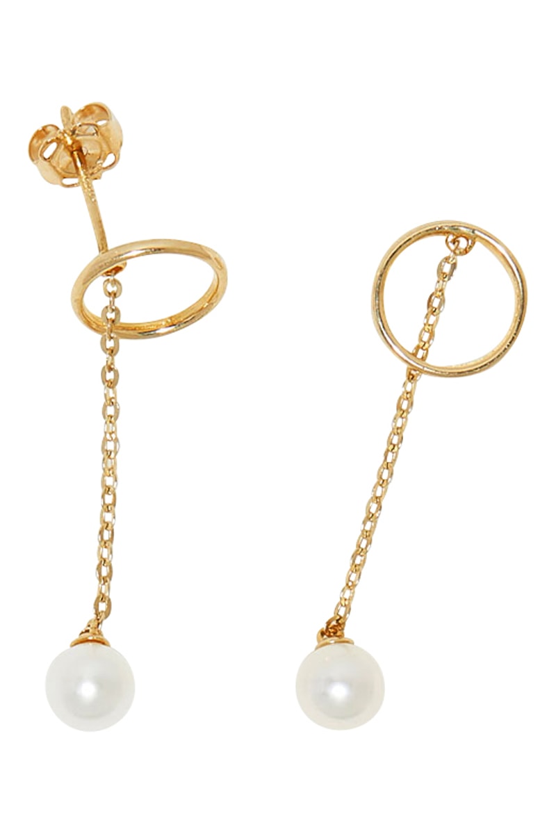 Boucles d'oreilles pendantes en or jaune serties de perle.