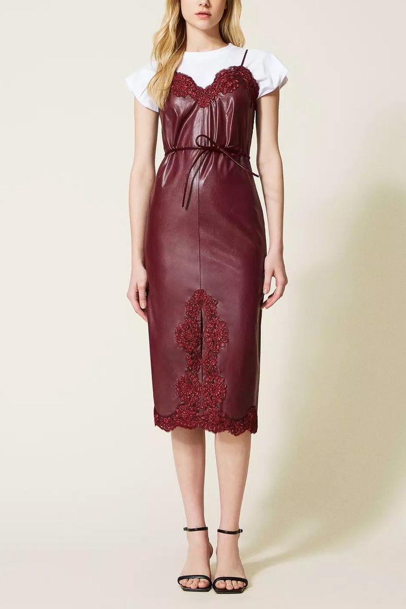 Robe midi et t-shirt - Bordeaux