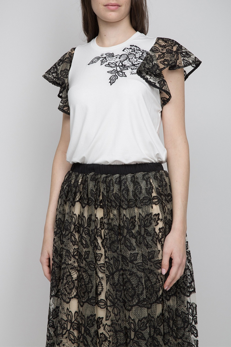 T-shirt à manches courtes volantées en dentelle.