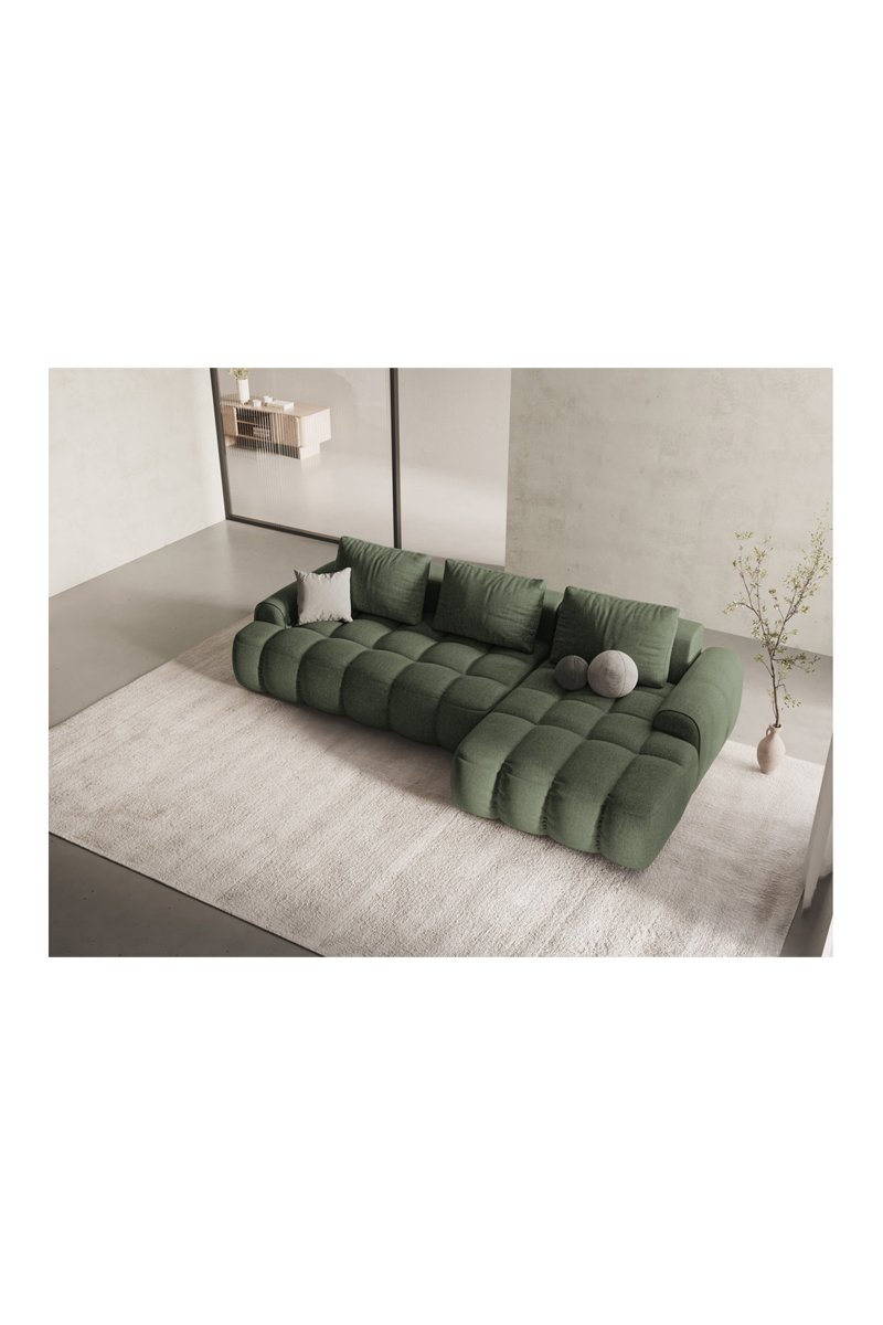 Canapé d’angle droit convertible Orchid - Vert olive - 3 places - En tissu structurel