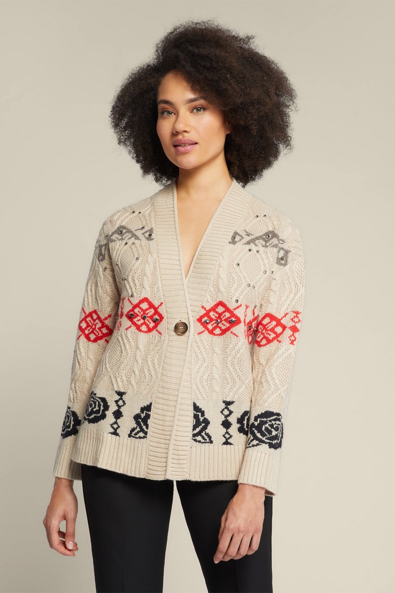 Gilet en laine et cachemire mélangés à manches longues.