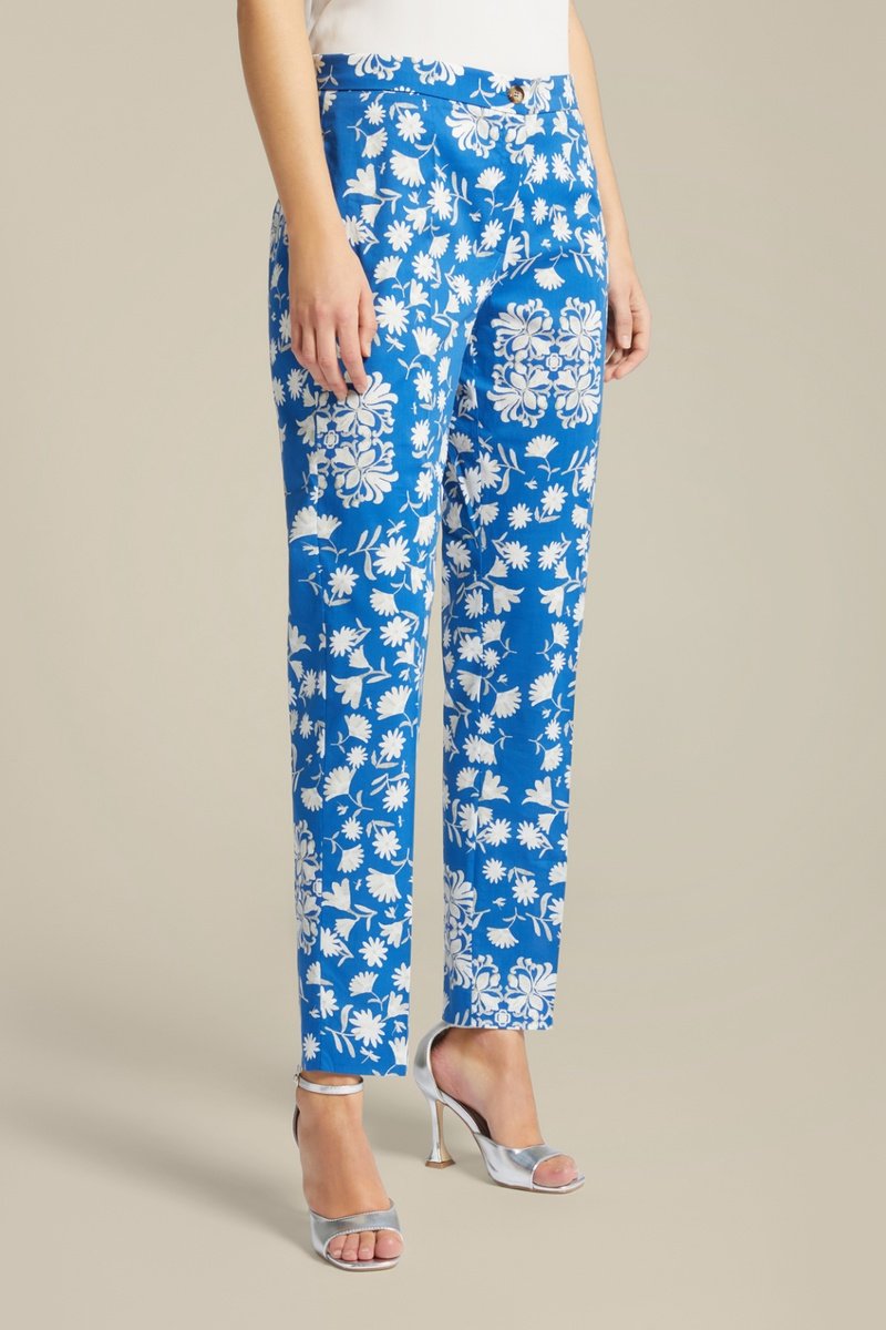 Pantalon cigarette - Bleu et blanc