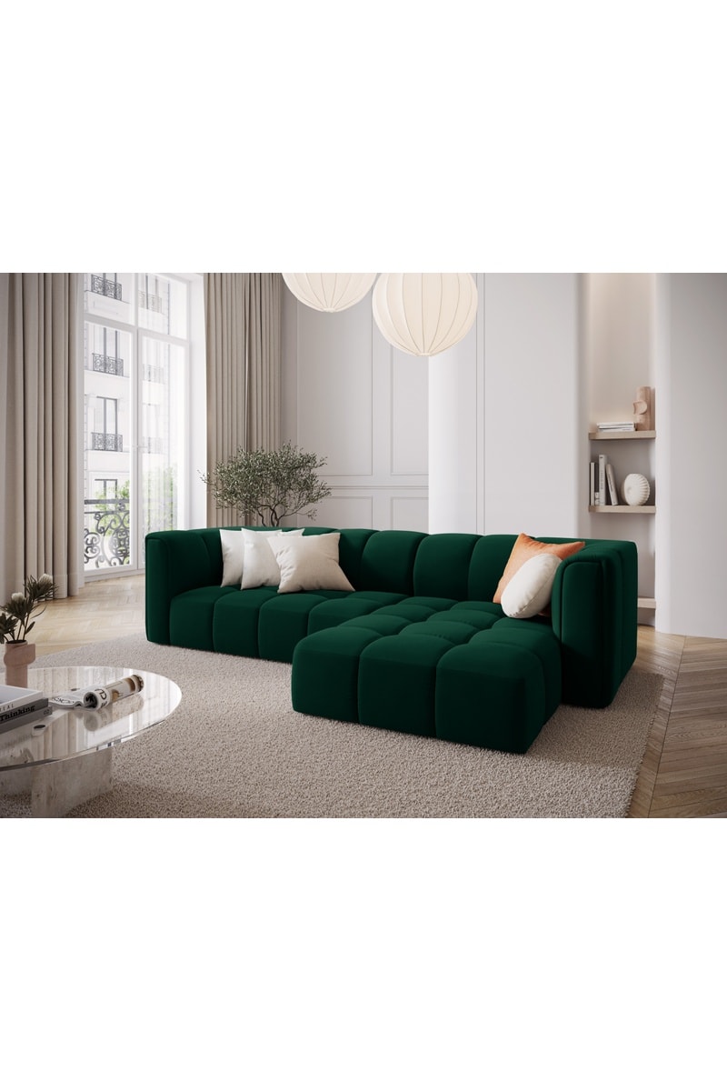 Canapé d'angle droit Adams - Vert - 3 places - En tissu velours