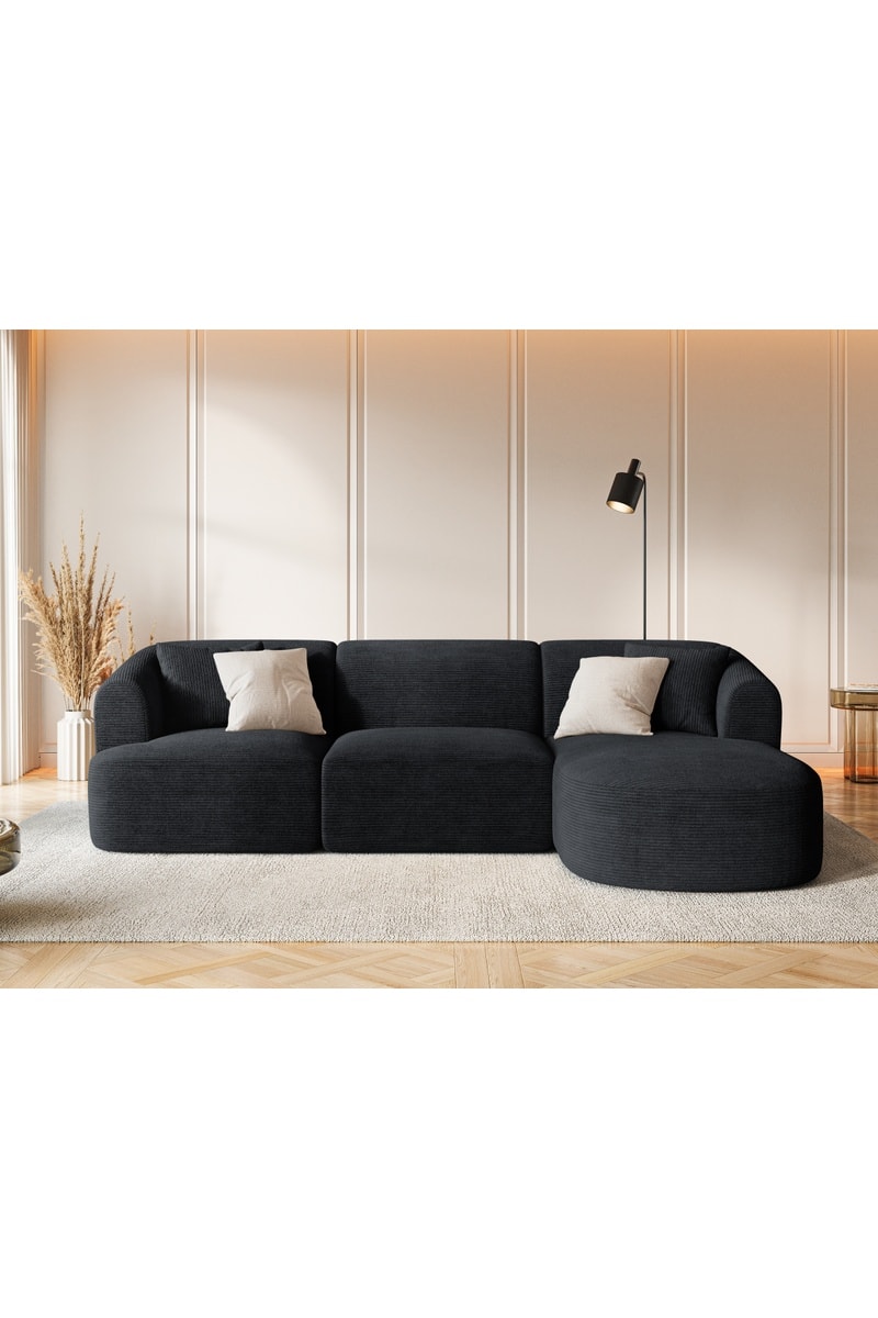 Canapé d'angle droit modulaire Talia - Noir - 4 places - Revêtement tissu Lincoln