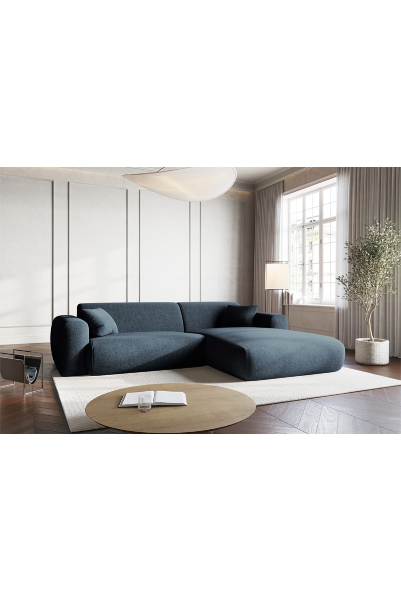 Canapé d'angle droit Theo - Bleu - 4 places - En tissu chenille soyeux