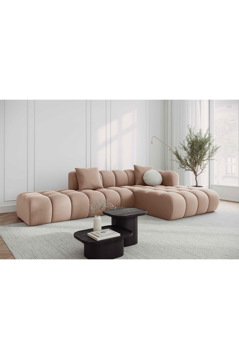 Canapé d'angle droit Halley - Beige - 5 places - En tissu velours