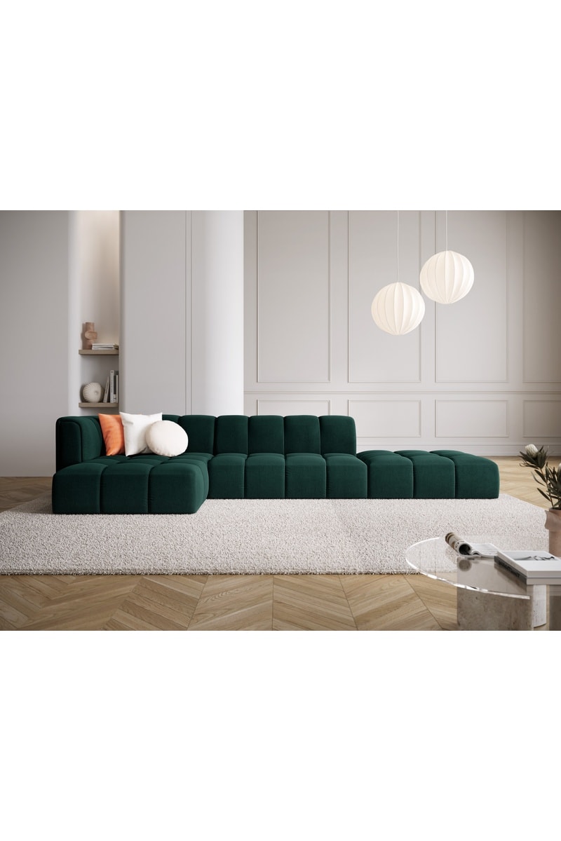 Canapé d'angle gauche modulaire Adams - Vert bouteille - 5 places - En tissu chenille velours doux
