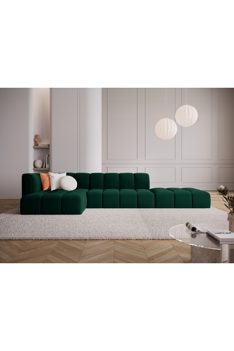 Canapé d'angle gauche Adams - Vert - 5 places - En tissu velours